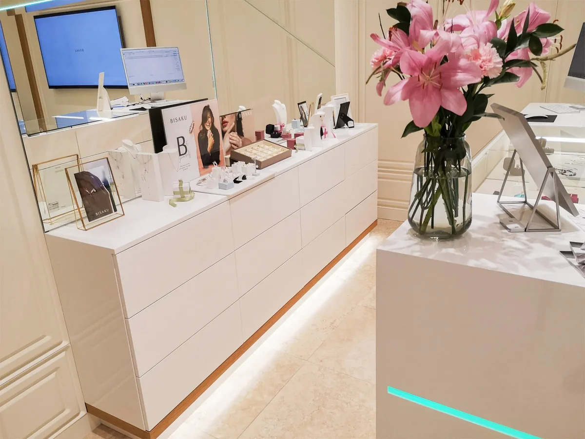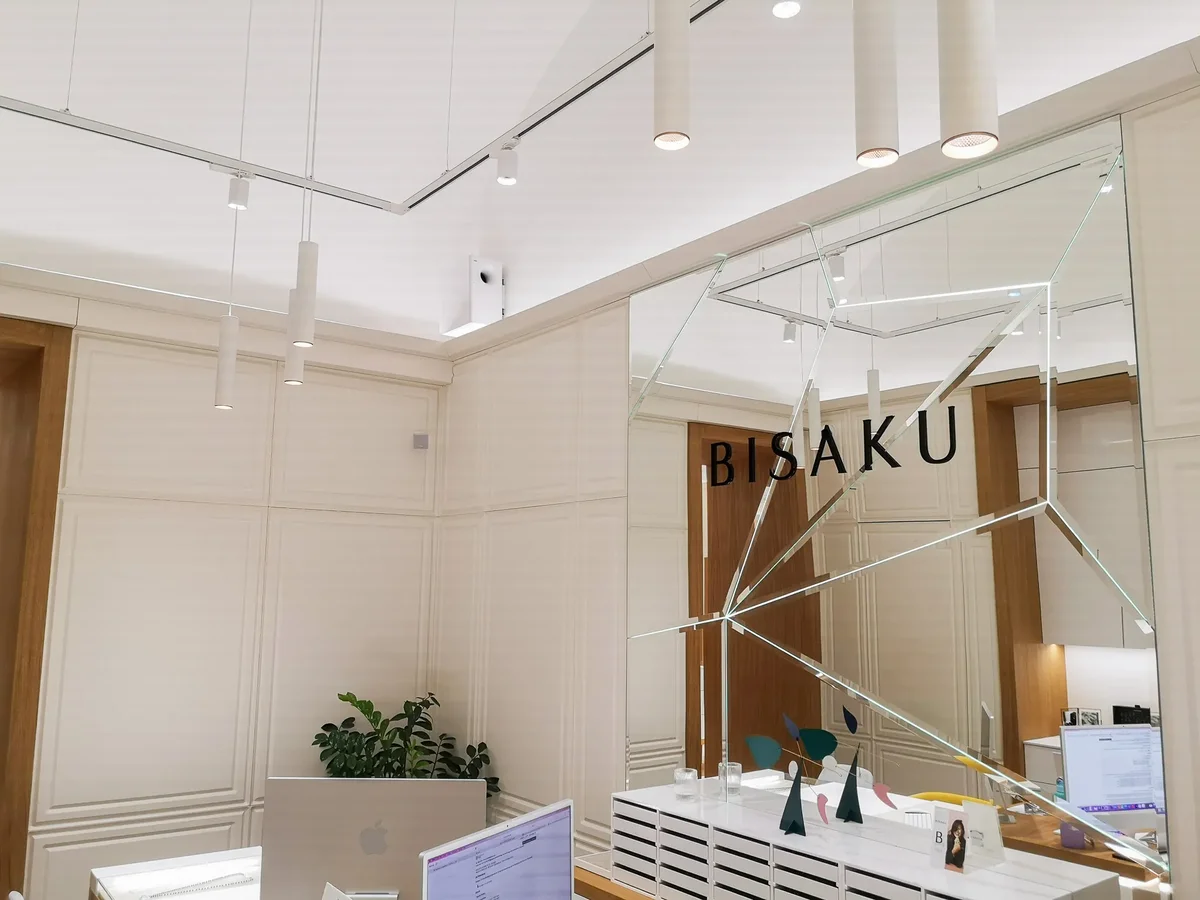 Výsledkem je moderní prodejní interiér, který kombinuje luxusní atmosféru s funkčním řešením pro každodenní provoz a podporuje silnou vizuální identitu značky BISAKU i na mezinárodním trhu.