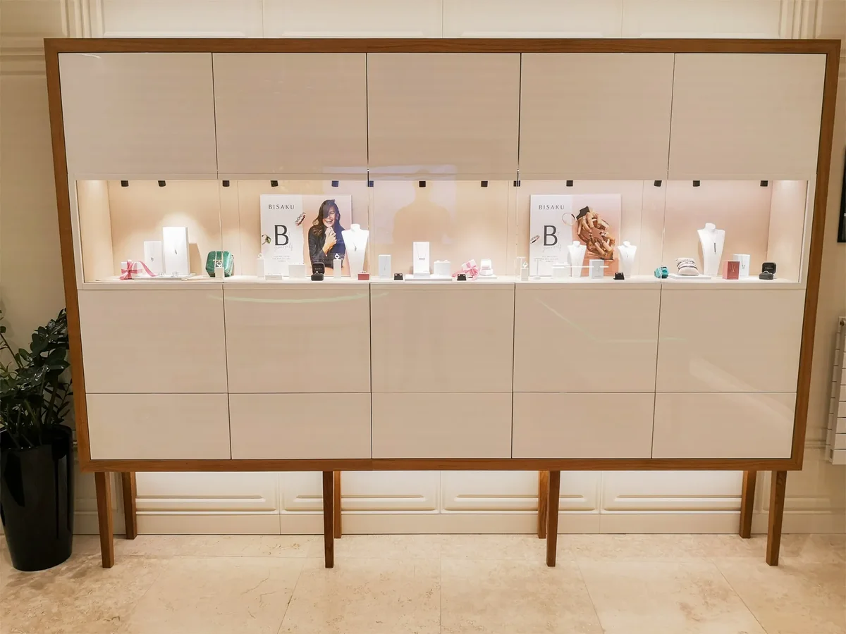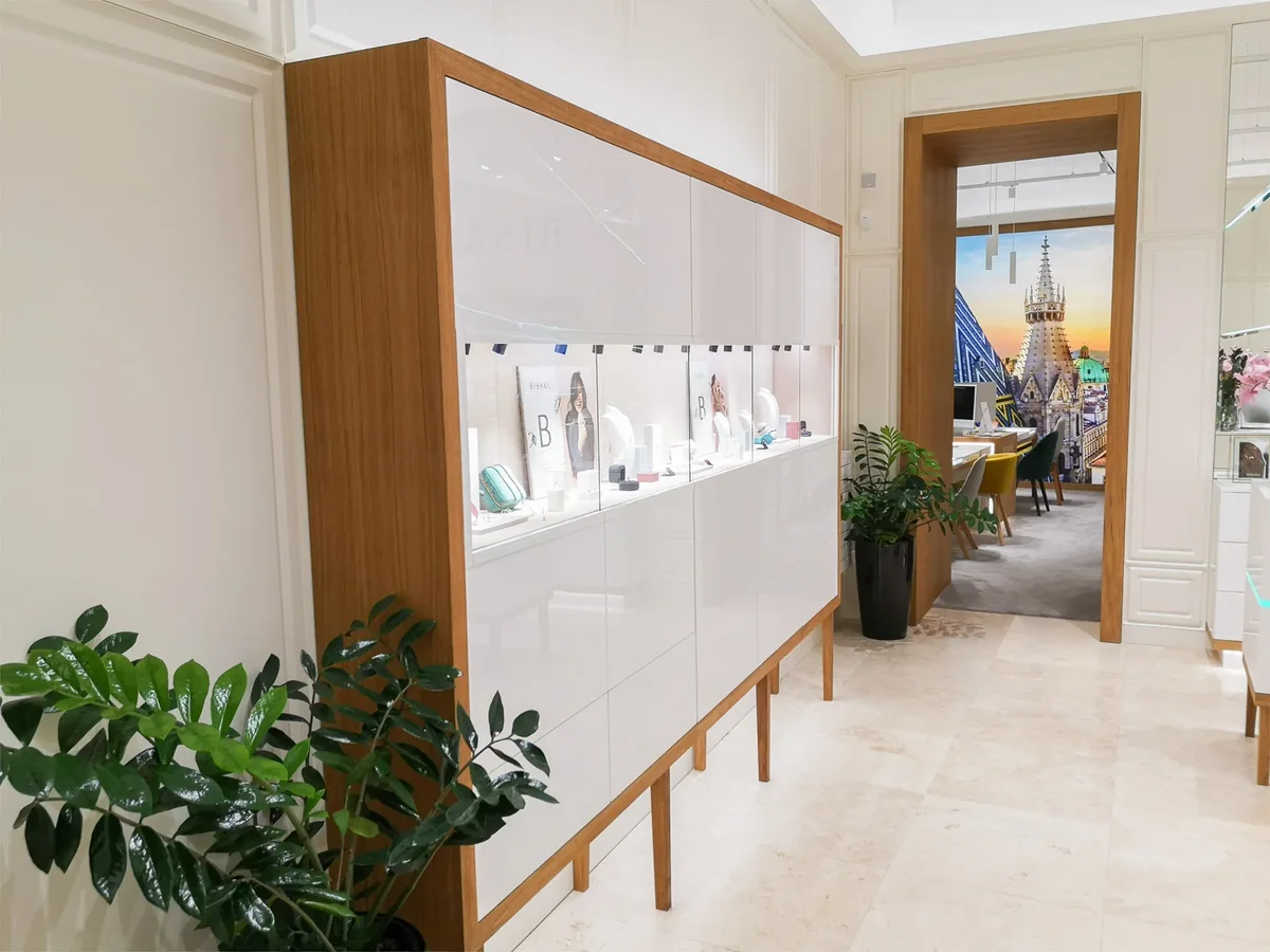 Pro značku BISAKU jsme navrhli a realizovali interiér prodejny šperků ve Vídni, který navazuje na elegantní vizuální identitu značky a zároveň respektuje reprezentativní charakter lokality. Cílem návrhu bylo vytvořit luxusní, ale zároveň velmi čistý a přehledný prostor, ve kterém mohou šperky přirozeně vyniknout.